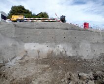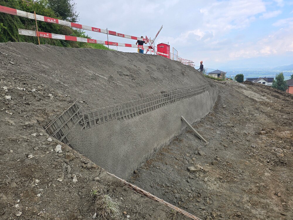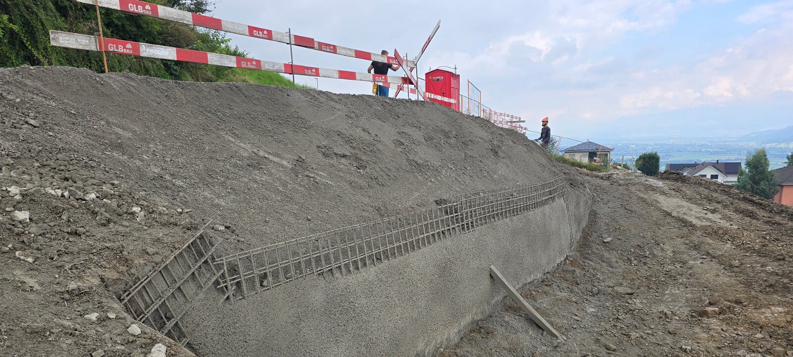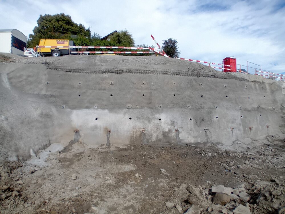 Arbeiten: Erstellen einer Nagelwand mit Spritzbeton.